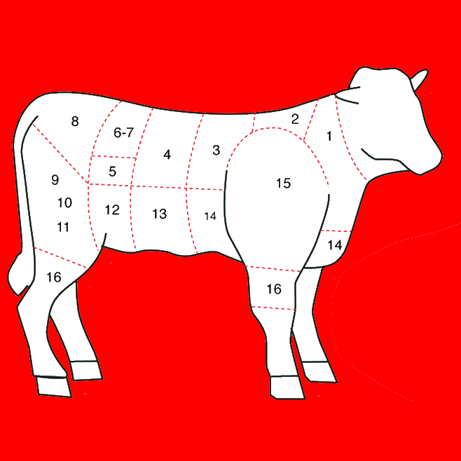 | 16 | Jarrets avant et arrière | 250 g avec os | Bouillir | Braiser |